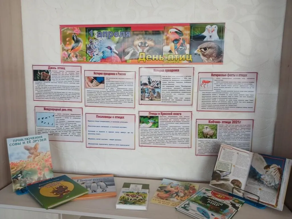 1 апреля 2026 года во многих странах мира отмечают Международный день птиц - экологический праздник, посвященный защите пернатых и сохранению тх среды обитания. Этот день напоминает, насколько птицы важны для экосистем и жизни человека. В Красноярской сельской библиотеке к этому дню оформлена книжная выставка .