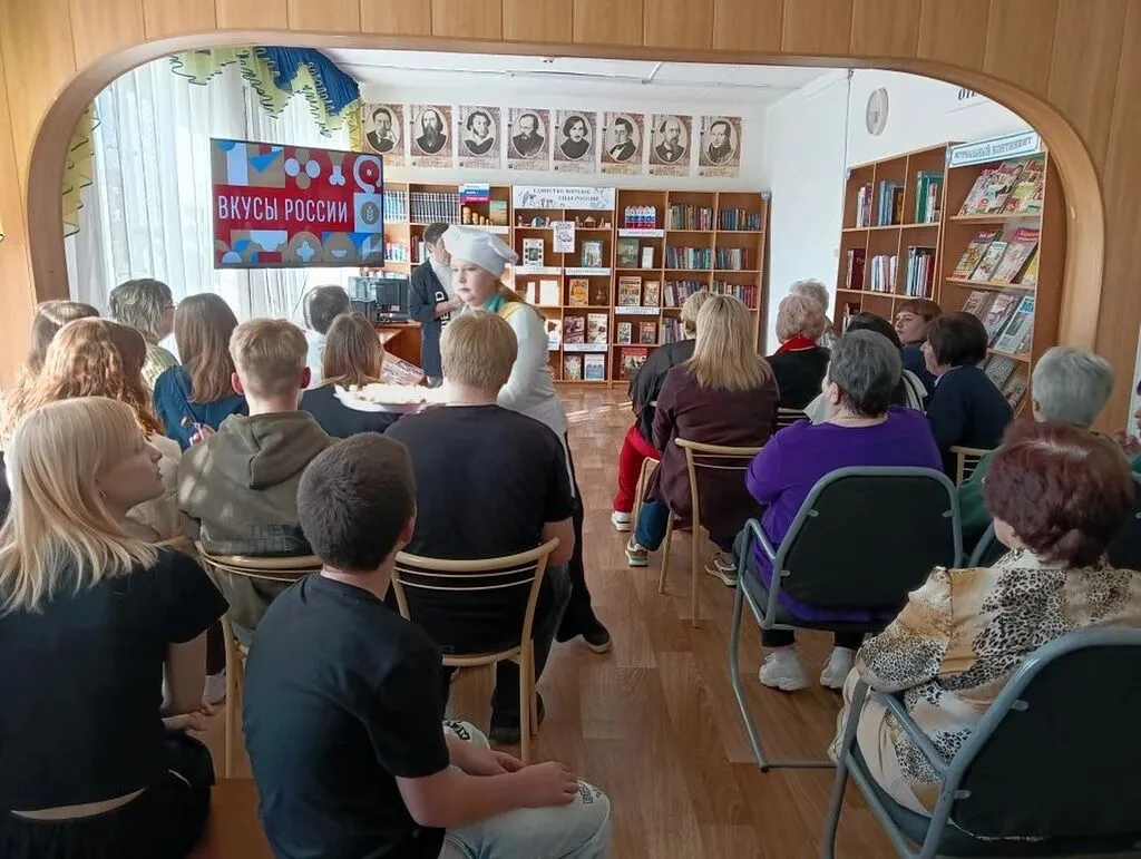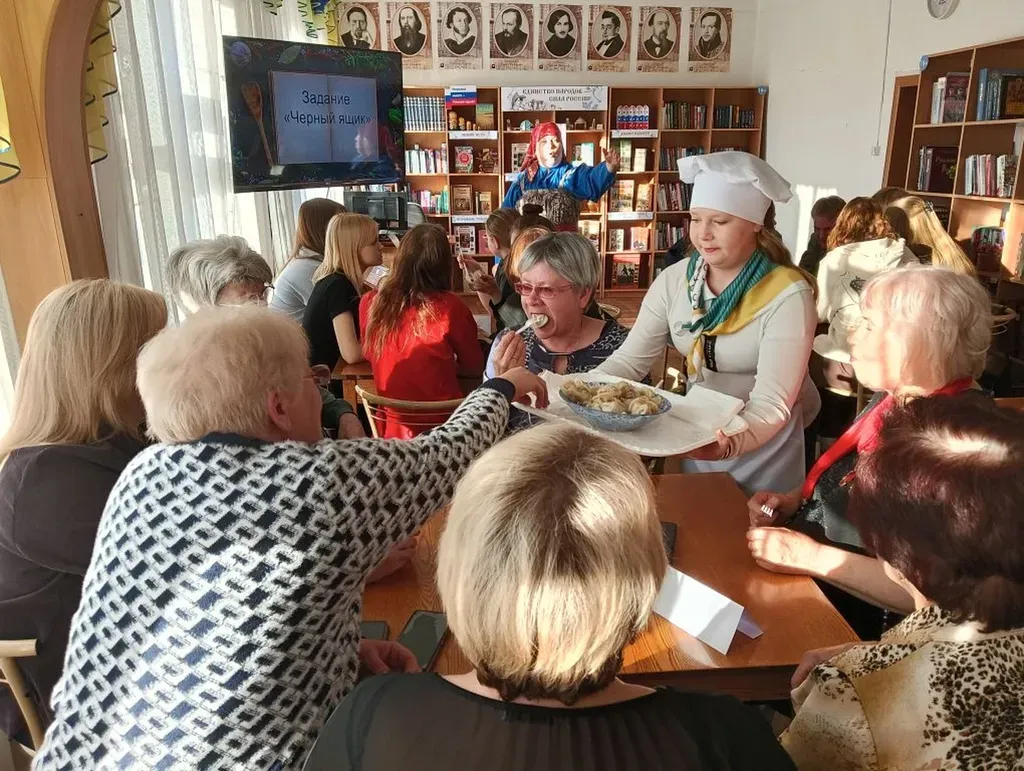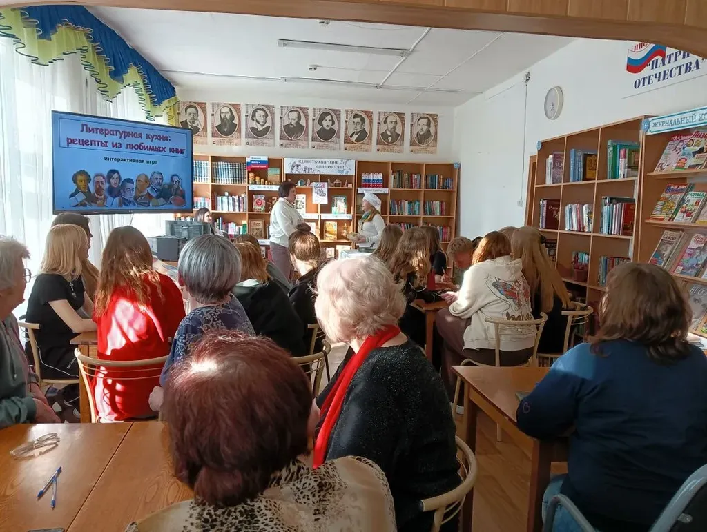 Все желающие могли на абонементе посетить библиокафе : «Что кушать изволите». Здесь, в этом уютном месте была оформлена книжная выставка: «Вкусы России», накрыты столы с национальными блюдами, дымился горячий, запашистый травяной чай, мягкое уютное кресло около красиво сервированного стола, где можно было попить чай и сфотографироваться. Библиотекарь напомнила гостям о традициях русского народа, как велика Россия и разнообразны кухни народов, живущих в ней. Национальные кухни – это не просто способ приготовления пищи, это бесценное наследие, живая история народов, передающаяся из поколения в поколение. Рассказ о блюдах армянской, татарской, русской ,алтайской, немецкой и др. кухонь переплетался гастрономическими загадками, викторинами, шарадами. На память гостям подарили красочные буклеты с рецептами блюд.В мире литературы еда — не просто фон для сюжета, а настоящий художественный инструмент. Через описание блюд и застолий писатели раскрывают характеры героев, передают дух времени и даже создают атмосферу эпохи. Именно об этом шла речь на литературно-кулинарном шоу «Рецепты любимых книг», где гости отправились в путешествие по страницам классики, узнавая, что ели герои Пушкина, Толстого, Гоголя и других мастеров слова.